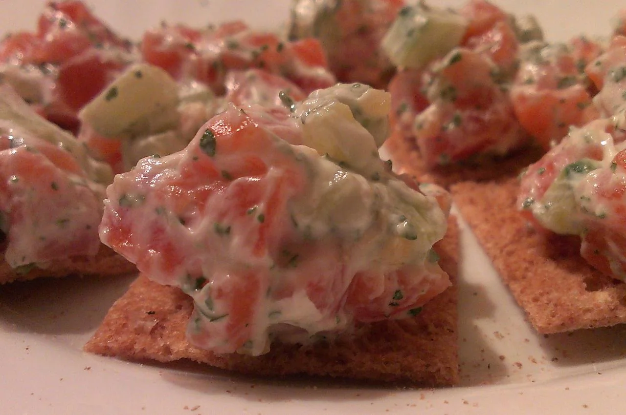Закуска из подкопченной форели и творога на ржаных хлебцах