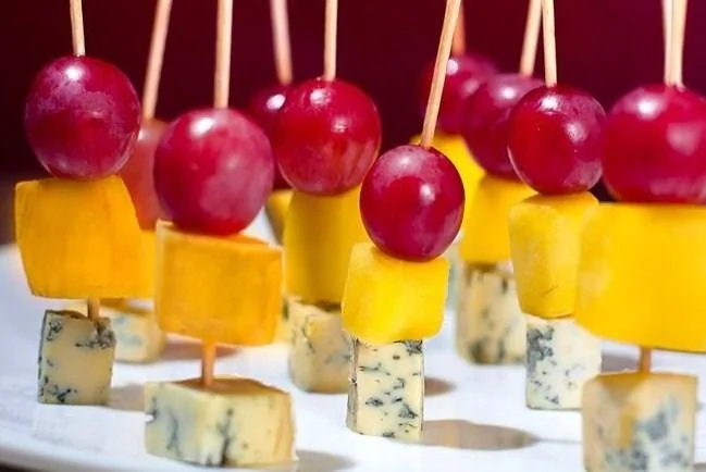 ШАГ 3 На зубочистки нанизываем виноград, манго и сыр дор-блю.