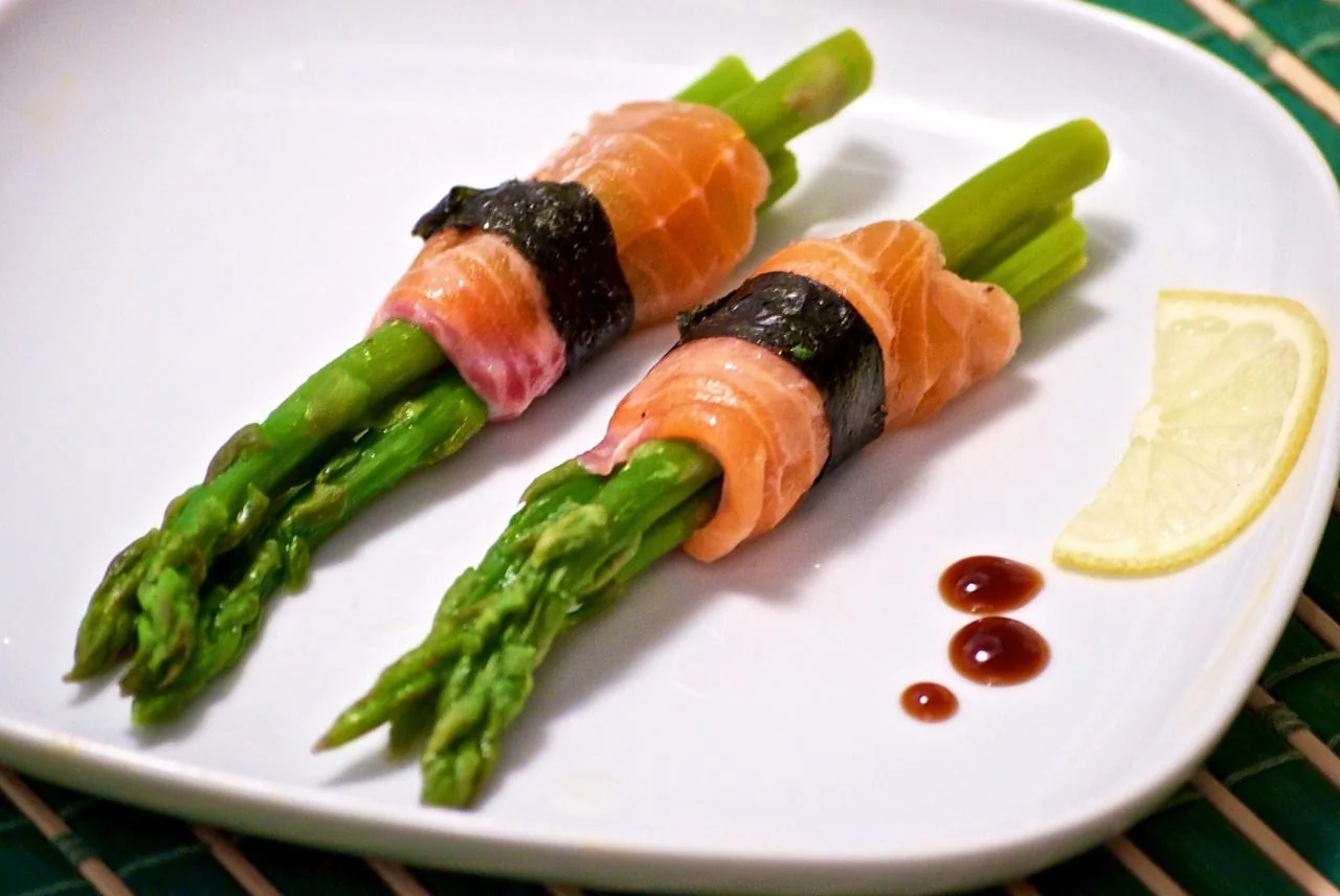 Ролл из спаржи с лососем