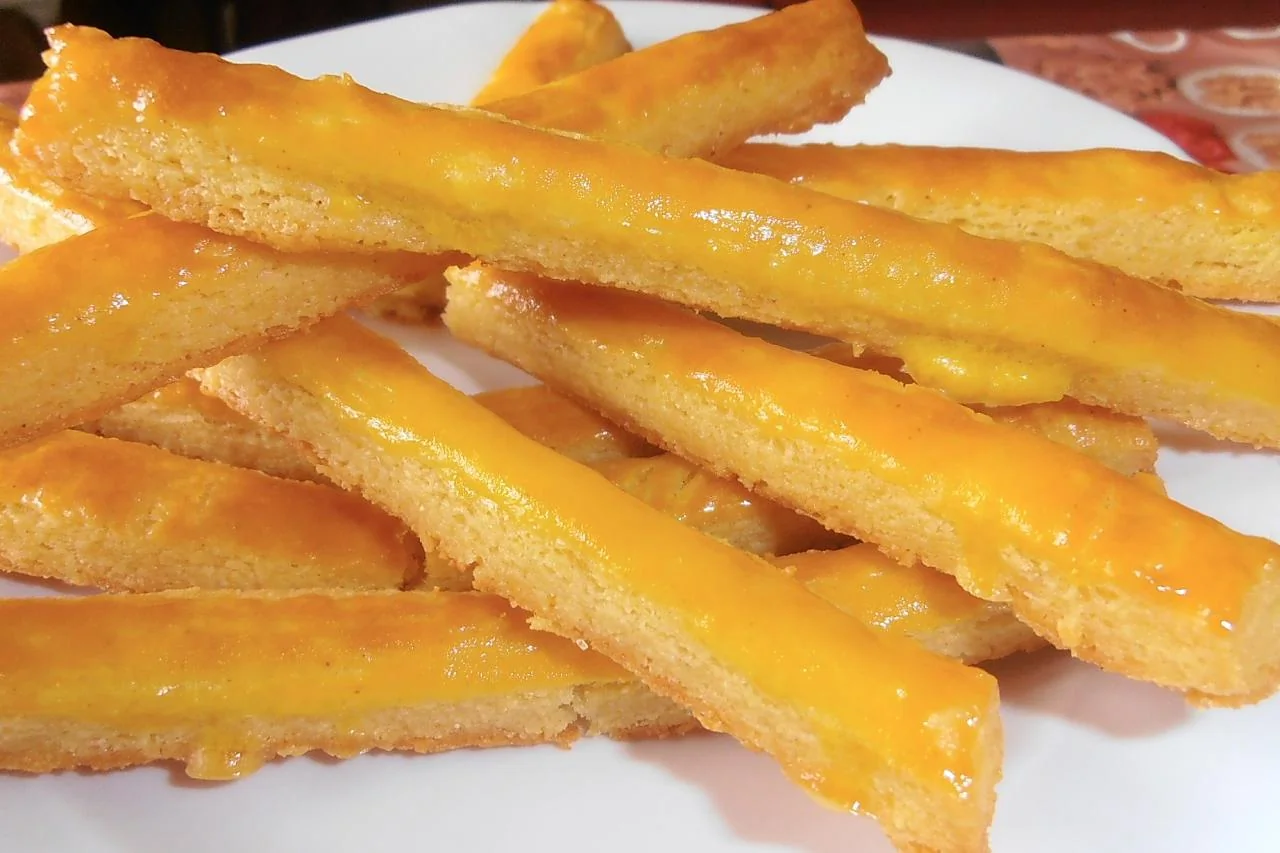 ШАГ 3 Разогреть духовку до 200 градусов. Выложить палочки на застеленный бумагой для выпечки противень и смазать желтком. Выпекать до золотистого цвета.