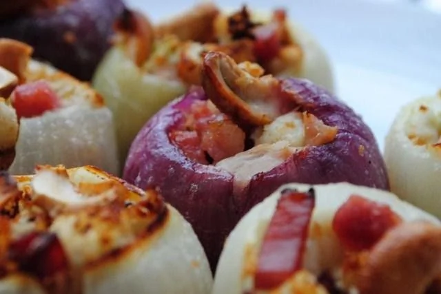 Ингредиенты для приготовления Фаршированный лук, запеченный в беконе:
