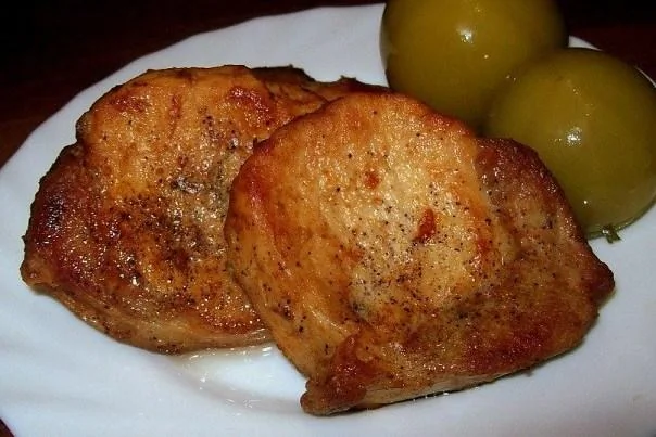 ШАГ 1 Свинину нарезать на кусочки, можно отбить слегка (но я не отбивала), хорошо посолить, поперчить и выложить жариться на раскаленное масло, быстро обжарить с двух сторон до образования корочки, потом залить томатный сок и тушить до полной готовности.