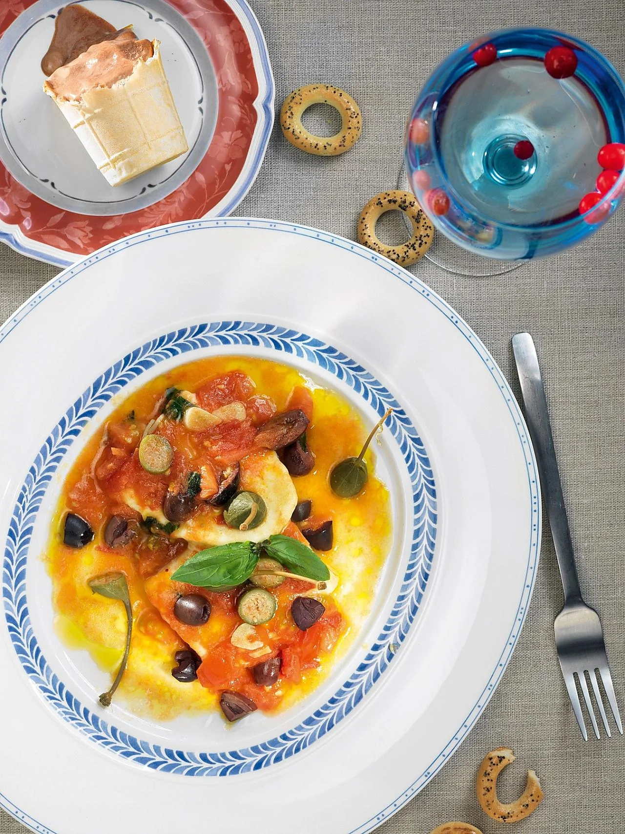 Ингредиенты для приготовления Теплый домашний сыр в соусе из помидоров и оливок: