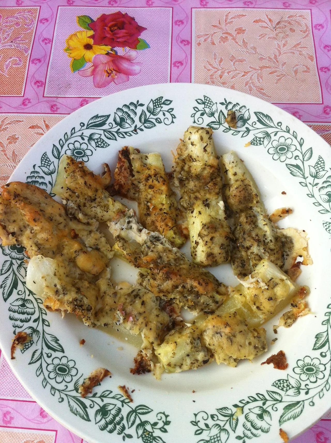 ШАГ 3 Каждую палочку обмакивать в яйцо, панировать в сыре, выкладывать на противень, устланный пекарской бумагой.