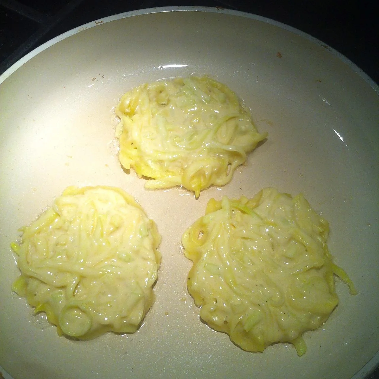 ШАГ 3 Жарить на хорошо разогретой сковороде на растительном масле, формируя при помощи ложки. При желании, после жарки оладьи можно выложить на бумажную салфетку, чтобы убрать лишний жир. Чеснок дает очень приятную пикантность. Подавать со сметаной.