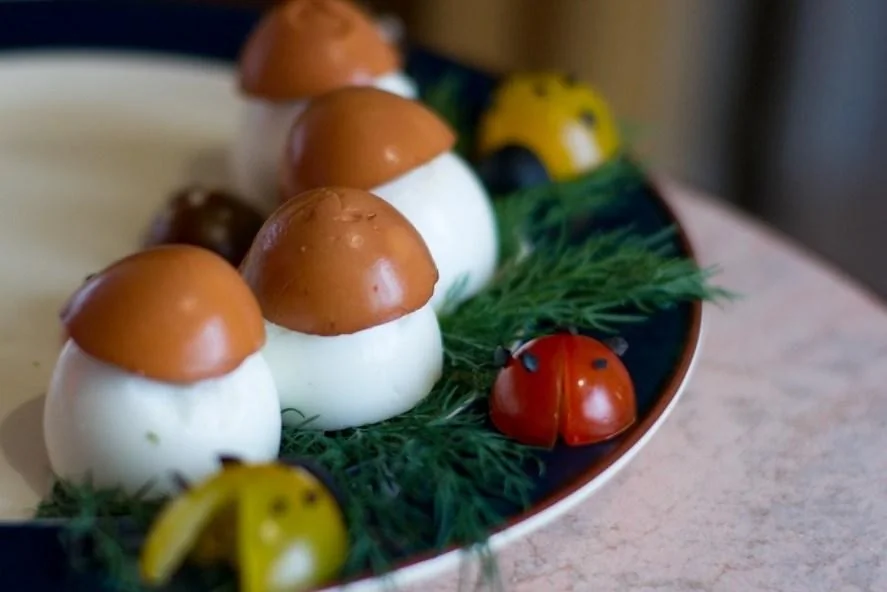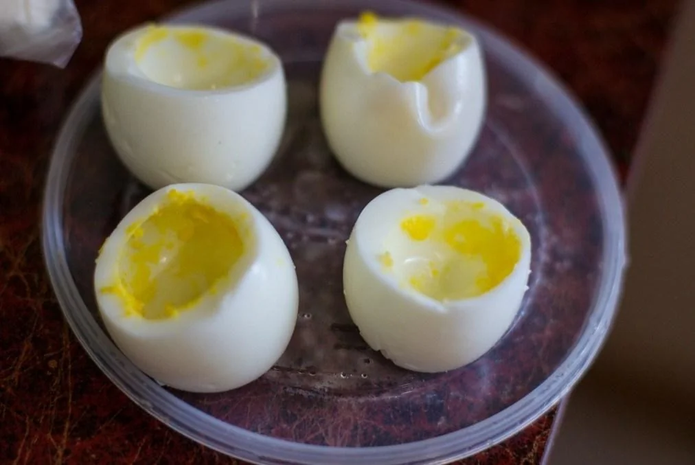ШАГ 5 Фаршируем вторые половинки яиц — «ножки гриба».