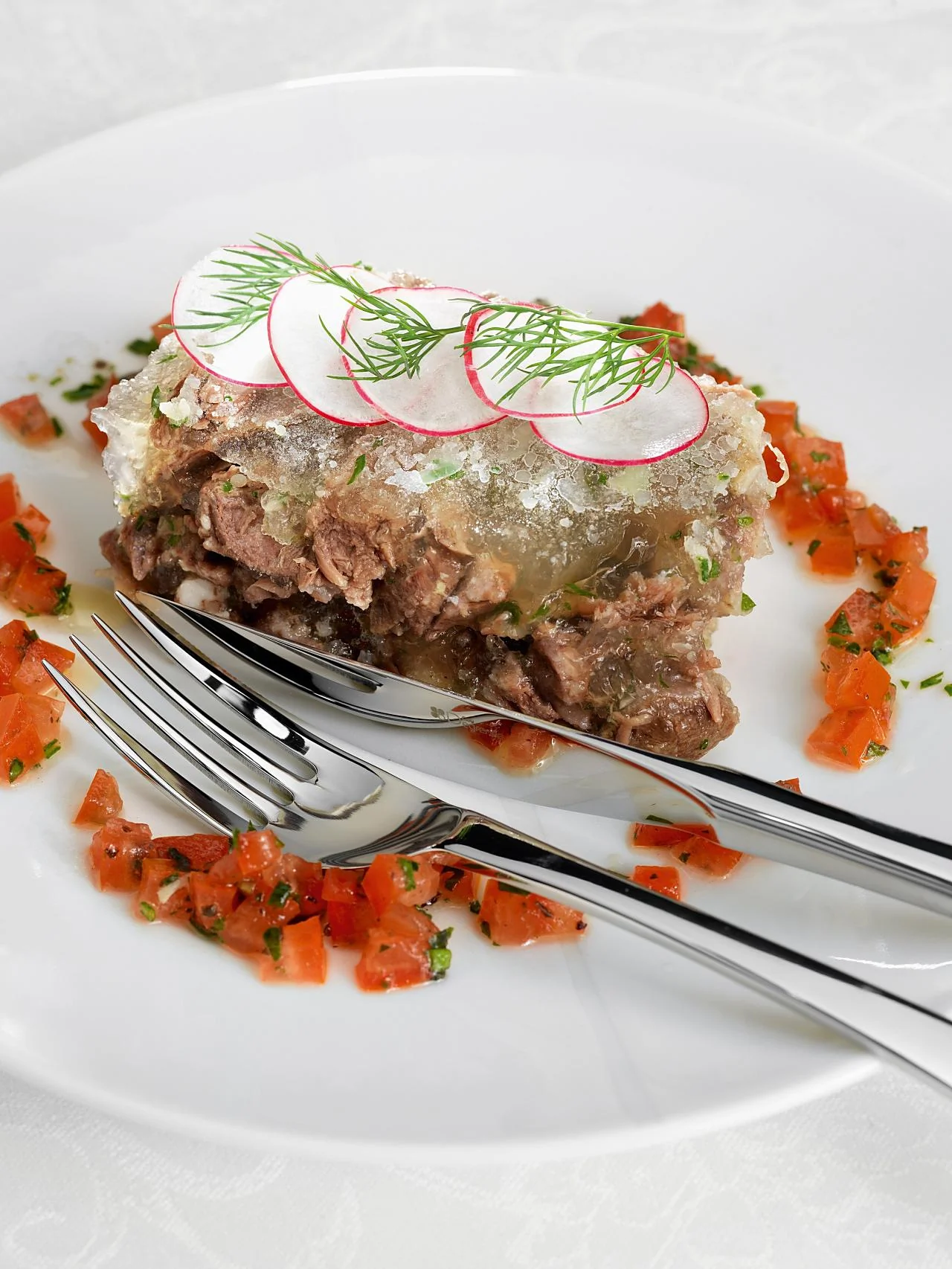 Ингредиенты для приготовления Холодец с салатом из редиса и томатной сальсой: