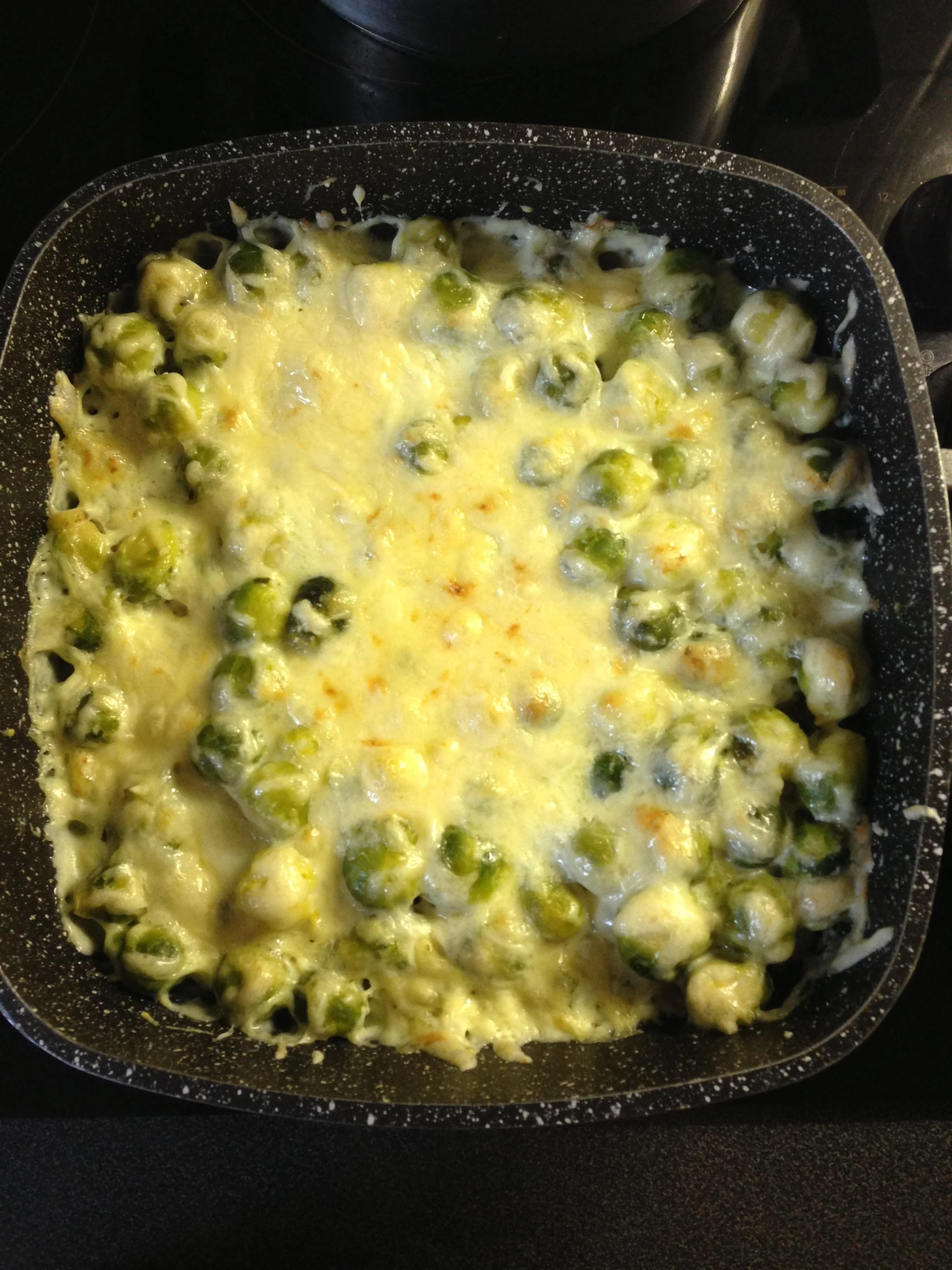 ШАГ 3 Отправьте содержимое кастрюли с капустой в дуршлаг и промойте под холодной водой. Капусту выложите в огнеупорную форму, полейте соусом и засыпьте тертым сыром. Пеките 10-15 минут при 180 градусах, пока не образуется золотистая корочка. Подавайте сразу, в этой же посуде.