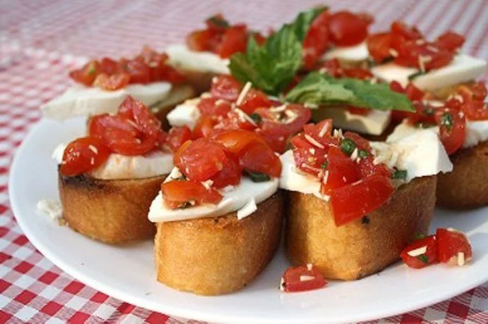 Ингредиенты для приготовления Брускетта с помидорами и моцареллой: