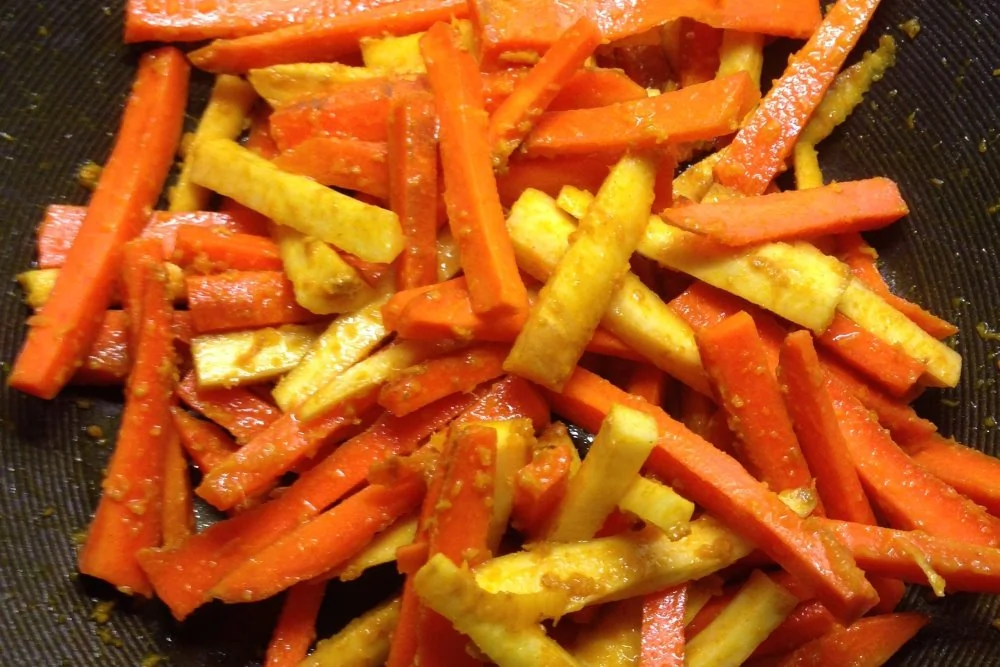 Морковь и пастернак, глазированные в имбирно-медовом соусе с куркумой