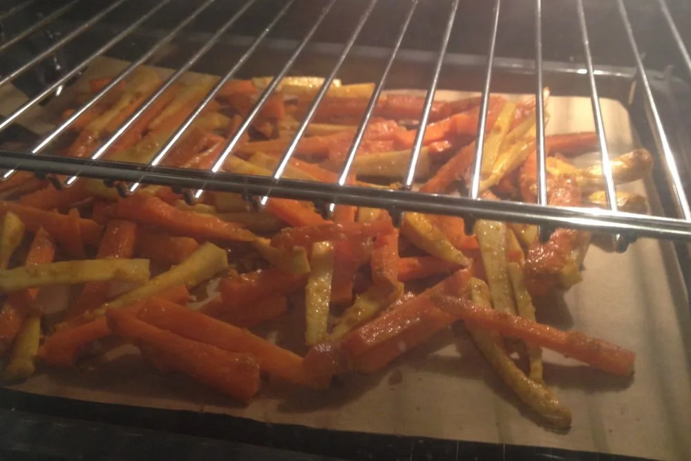 ШАГ 3 Положить фольгу на противень и равномерно разложить овощи по ней. Выпекать в духовке при 250 градусах 10 минут. Подавайте вместо картошки фри или же с салатами.