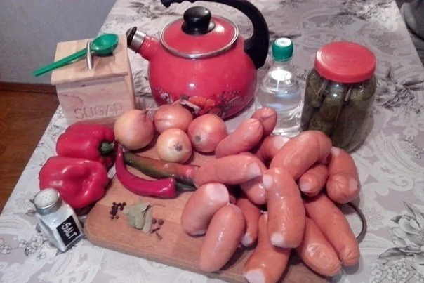 Ингредиенты для приготовления Маринованные и фаршированные шпикачки к пиву: