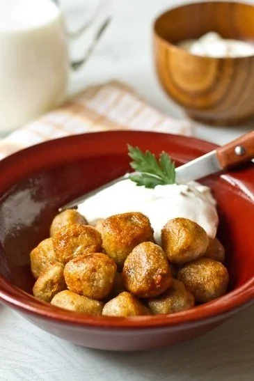 ШАГ 5 Подаем со сметаной или с зажаренным со шкварками луком. Ну и про молоко не забываем.