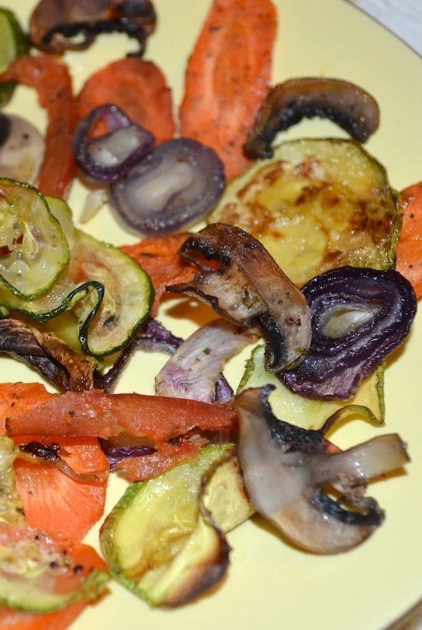 ШАГ 1 Разогреть духовку до 180 градусов. Вымыть овощи (очищать их от кожуры или нет, по желанию) и обсушить их. Нарезать овощи кружками или дольками как можно тоньше (1,5–2 мм).