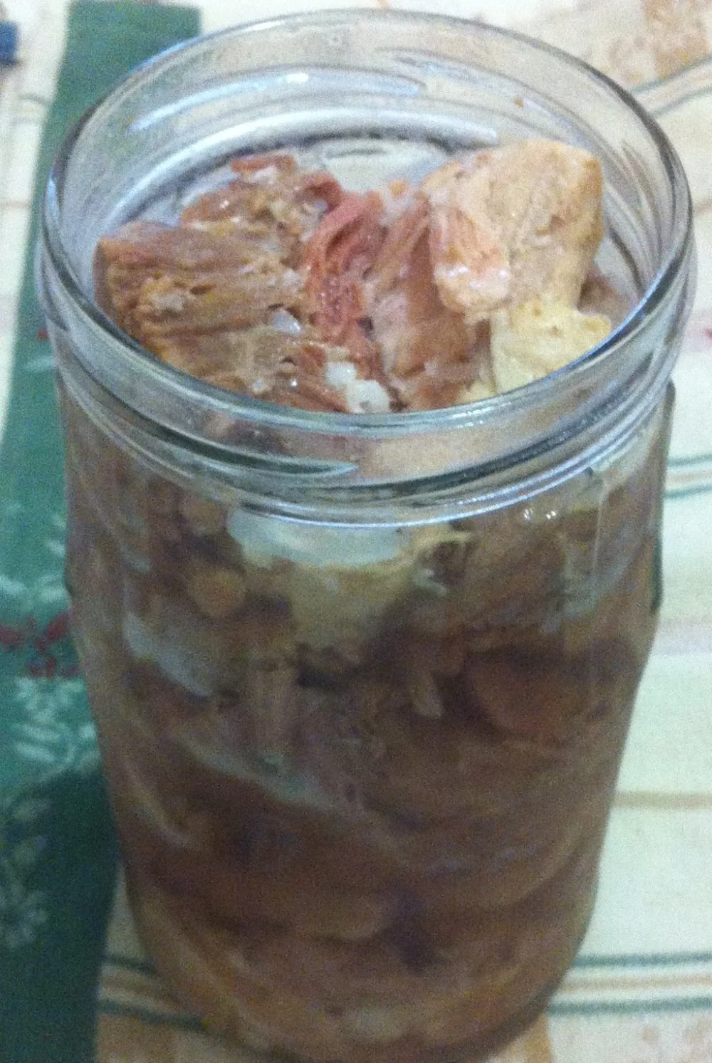 ШАГ 5 Не выключая огонь, мясо достать и разложить в подготовленные стерилизованные стеклянные банки. Я банки помыла с чистящим средством для мытья посуды и обдала кипятком. Крышки от них обязательно прокипятить.