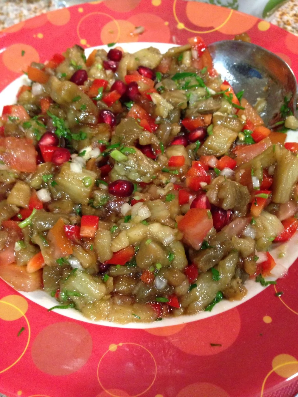 ШАГ 5 Добавить масло, pomegranate molasses, соль, соус барбекю (для тех, кто делает баклажаны не на гриле, для придания вкуса и запаха гриль) , зерна граната, соль.