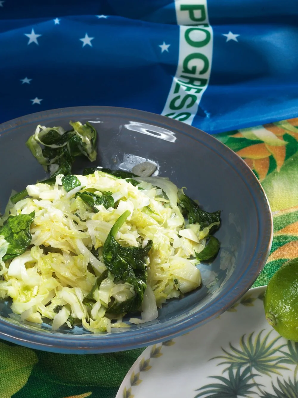 ШАГ 4 Когда капуста будет почти готова — протушена, но еще сохранит остатки плотности, — нужно добавить в нее шпинат, перемешать и снять с огня. Тепла сковороды и капусты хватит, чтобы довести шпинат до готовности. Сохранить сковороду с гарниром теплой до подачи.