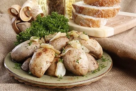 ШАГ 2 Посолите, добавьте лимонный сок и готовьте еще 5-8 минут. Разделите начинку по шляпкам и отправьте в разогретую до 180 градусов духовку на 10 минут. Потом увеличьте температуру до 220 и готовьте еще 5 минут. Подавайте сразу.