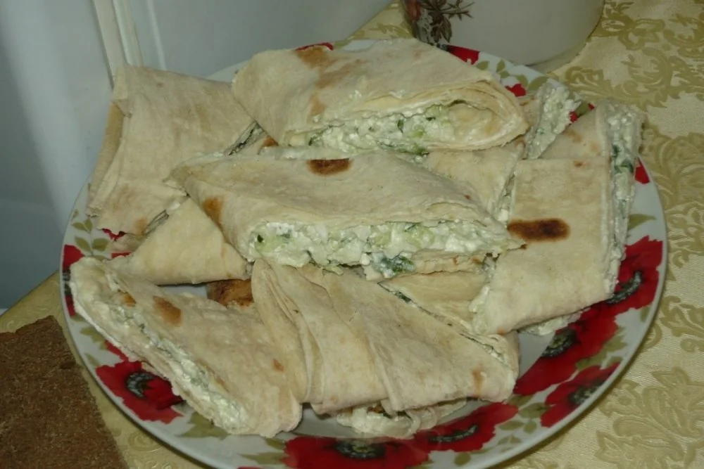 Ингредиенты для приготовления Творог, редис и огурец в лаваше: