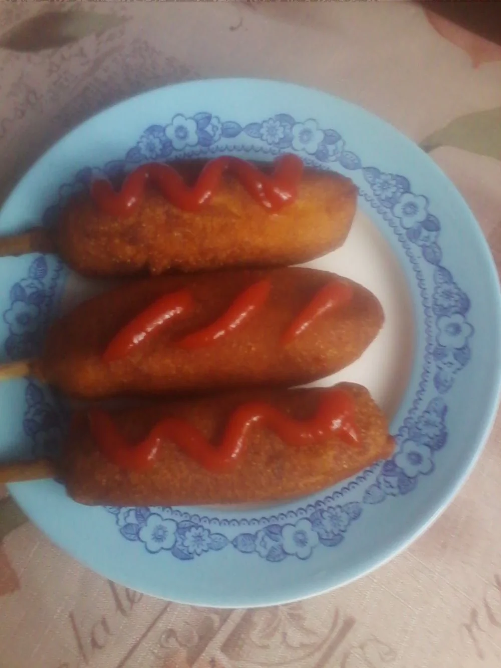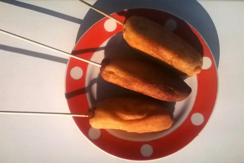 ШАГ 5 Перелейте тесто в узкий высокий стакан. Одну за одной окунайте сосиски в тесто и выкладывайте на сковородку. Жарьте в большом количестве масла до коричневой корочки.