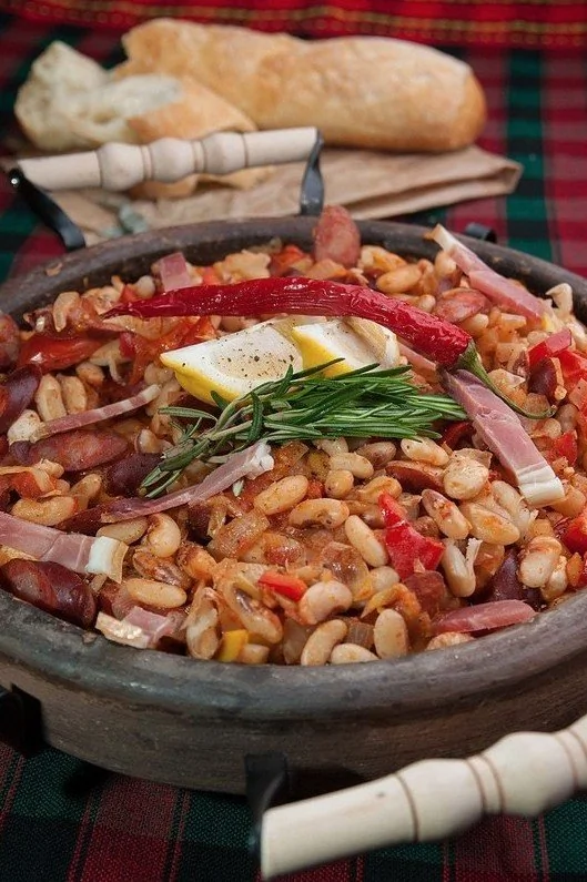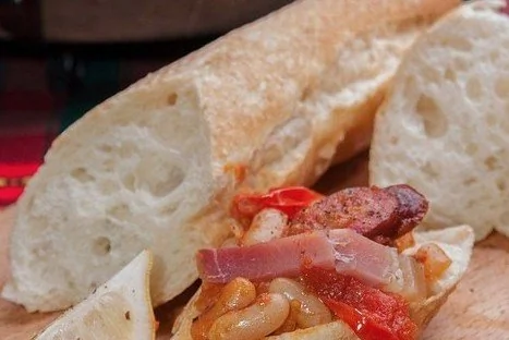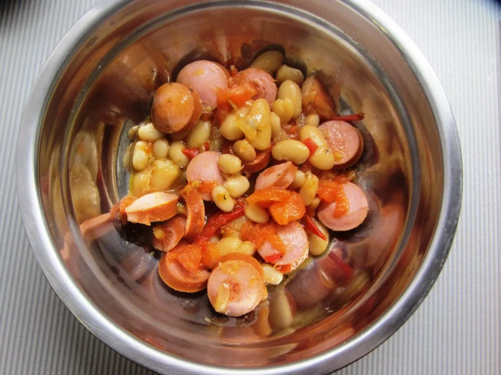 Ингредиенты для приготовления Фасоль в деревенском стиле с колбасками и овощами:
