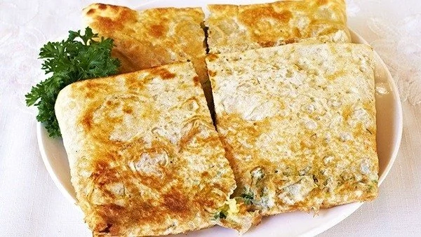 ШАГ 5 Смесь из зелени распределить на лаваше и сделать конвертик.