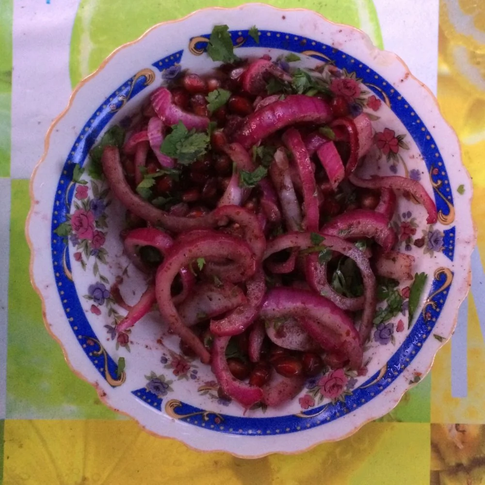 Салат из красного лука с гранатом к шашлыку