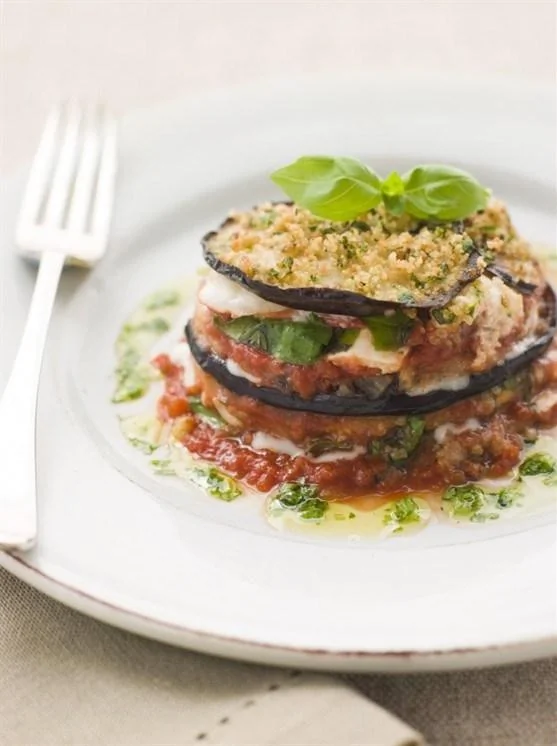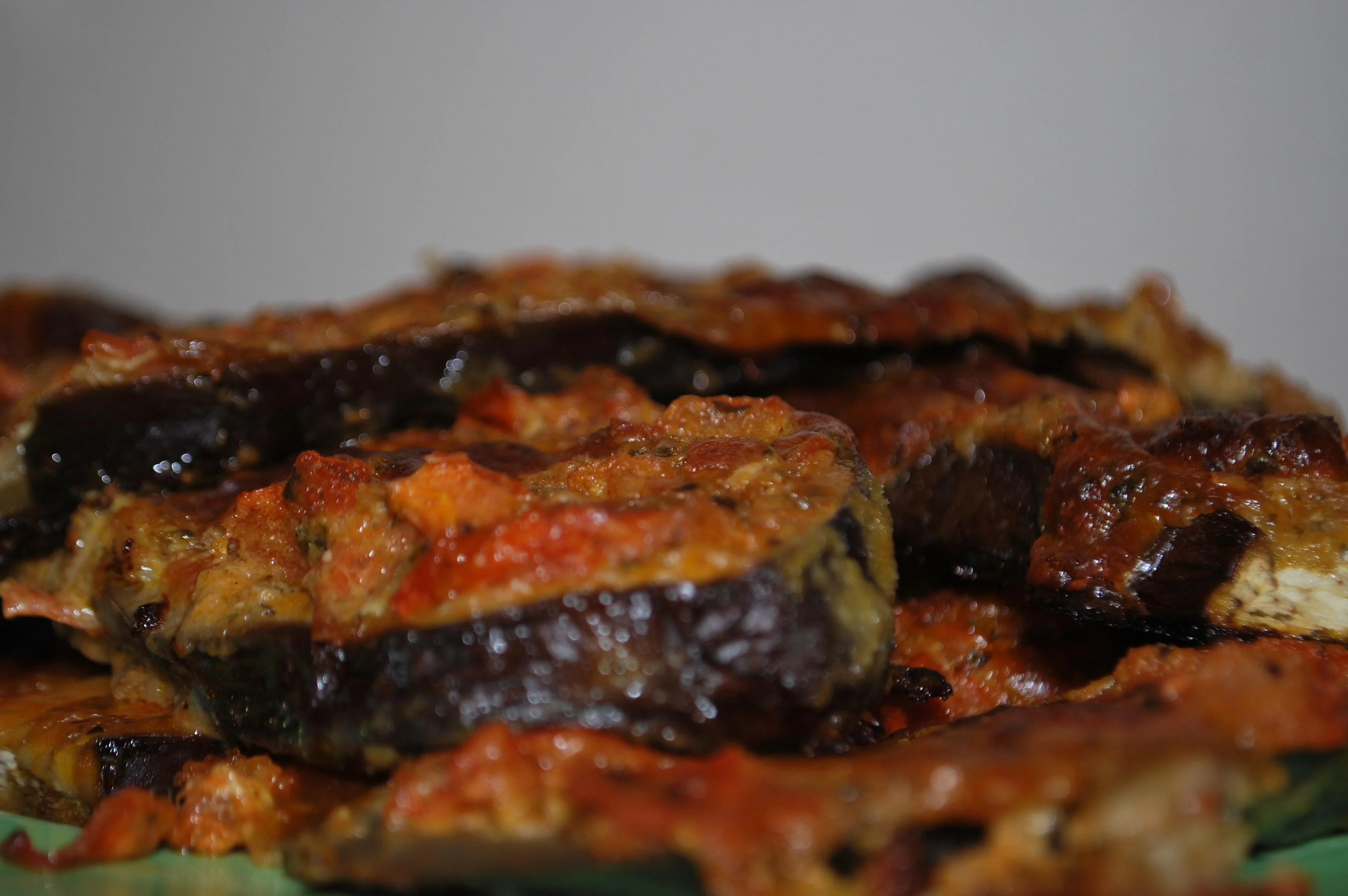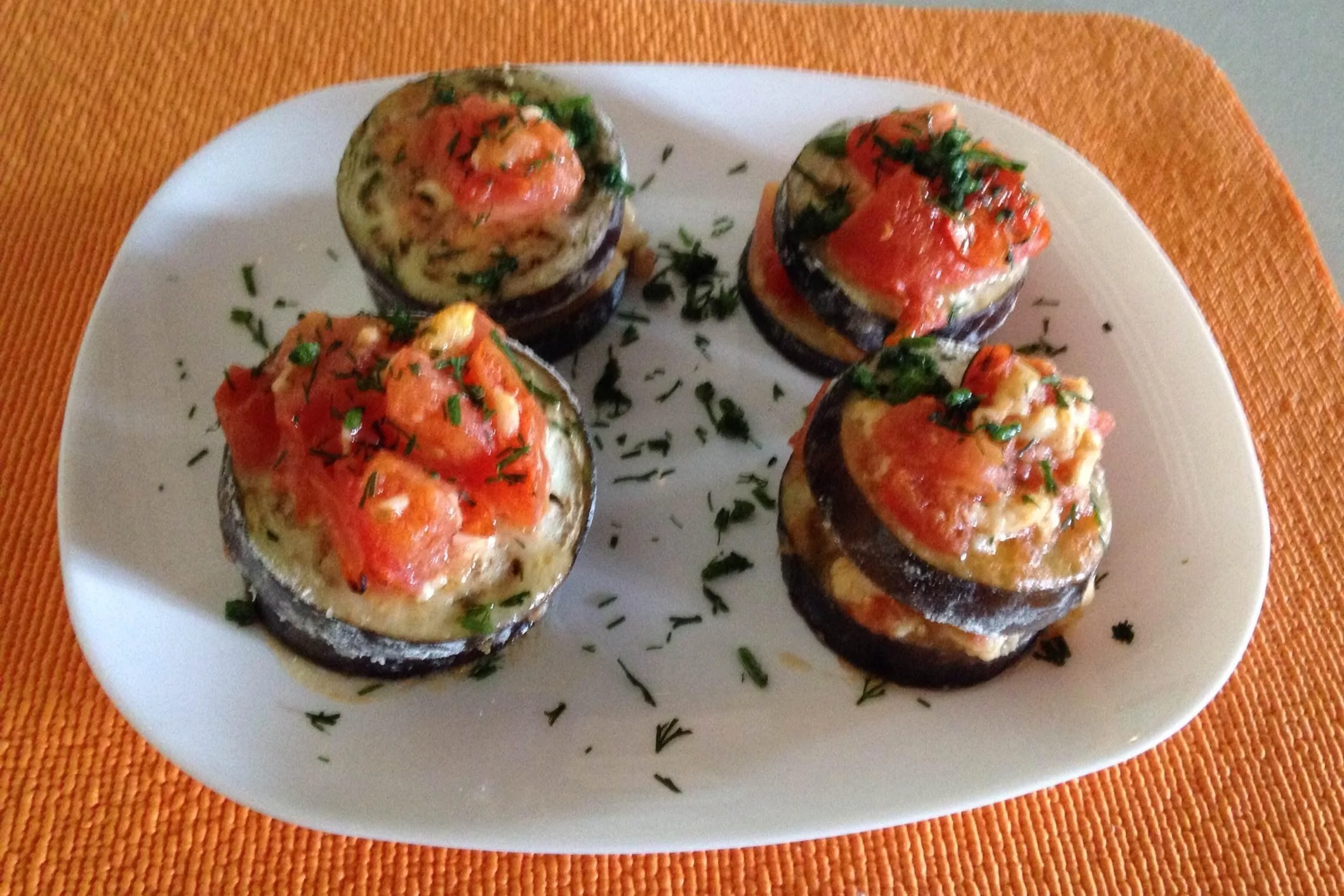 ШАГ 2 Баклажаны разрезать вдоль, обвалять в муке с солью, сверху положить смесь помидоров с чесноком и сыром. Запечь в духовке до готовности.