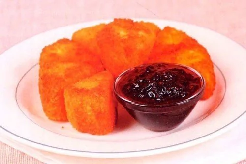 ШАГ 3 Обжарить запанированый сыр до образования ровной хрустящей корочки. Подавать горячим с клюквенным джемом.