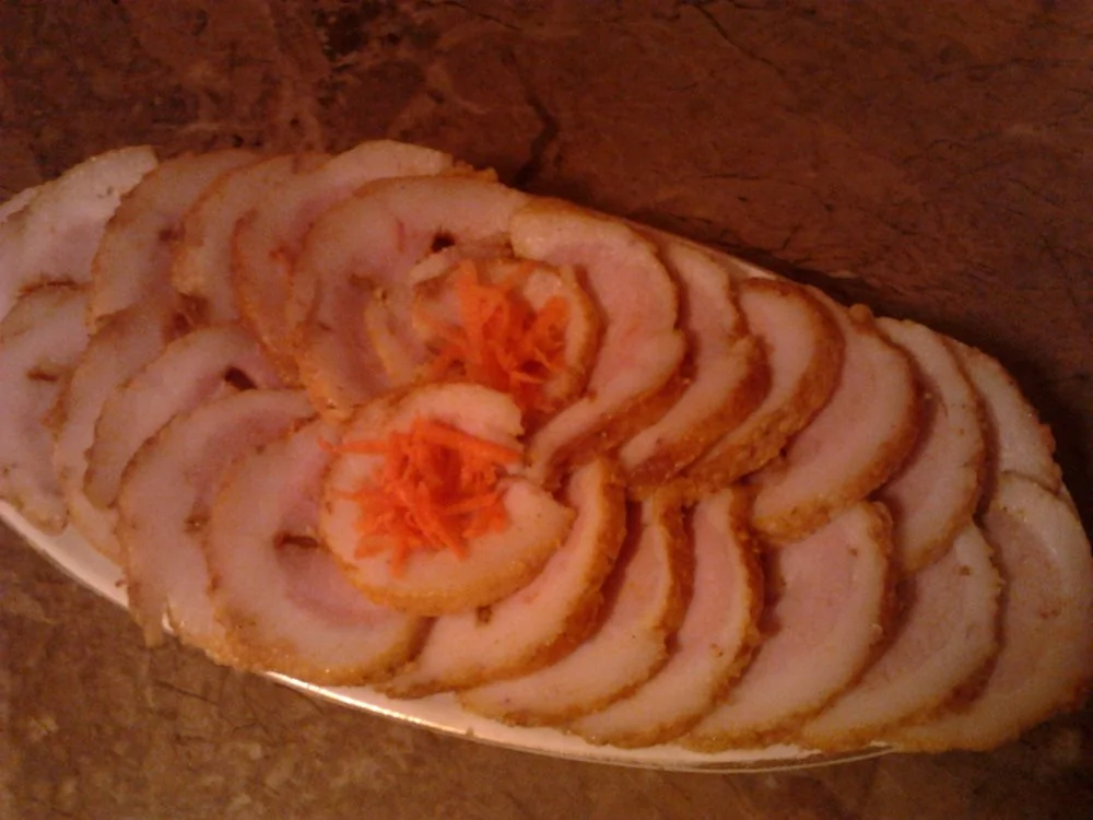 ШАГ 7 Затем снять фольгу, слить жир который стек с рулета.Остудить и поставить в холодильник на ночь, только потом снять нитки.