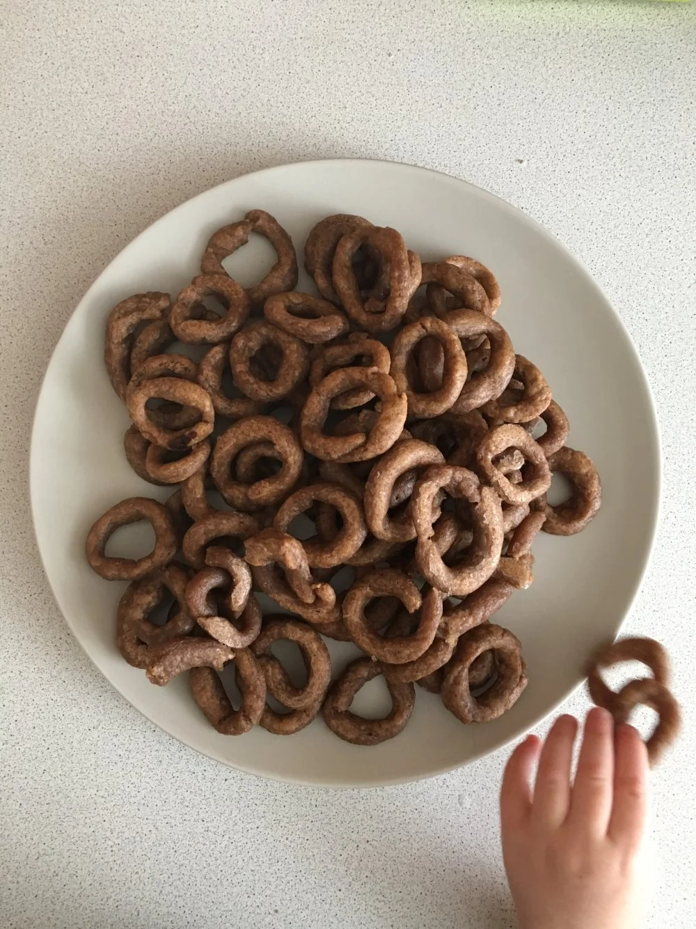 ШАГ 4 Раскатать колбаски (я делаю примерное в 1 см толщиной и 10-13 см длиной). Слепить сушки. Выходит около 30 шт.