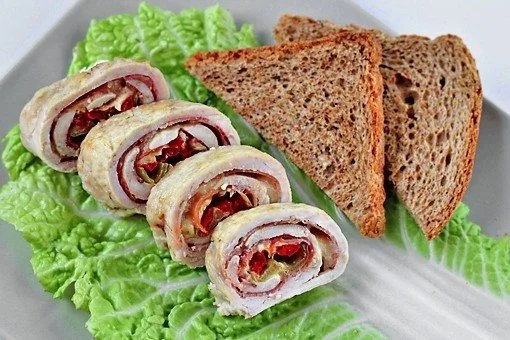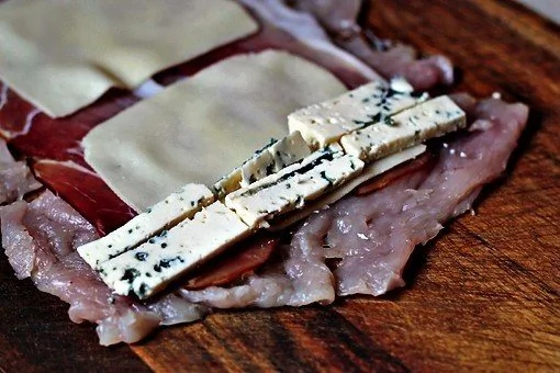 ШАГ 5 Свернуть все в рулетик. Закрепить зубочистками. Повторить тоже самое с остальными 2 грудками.