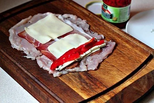 Ингредиенты для приготовления Куриный рулет с начинкой из сыра, бекона и перца: