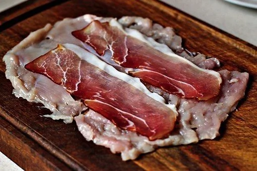 ШАГ 2 На одну куриную грудку положить 2 кусочка бекона (или ветчины). Сверху положить два ломтика плавленного сыра.