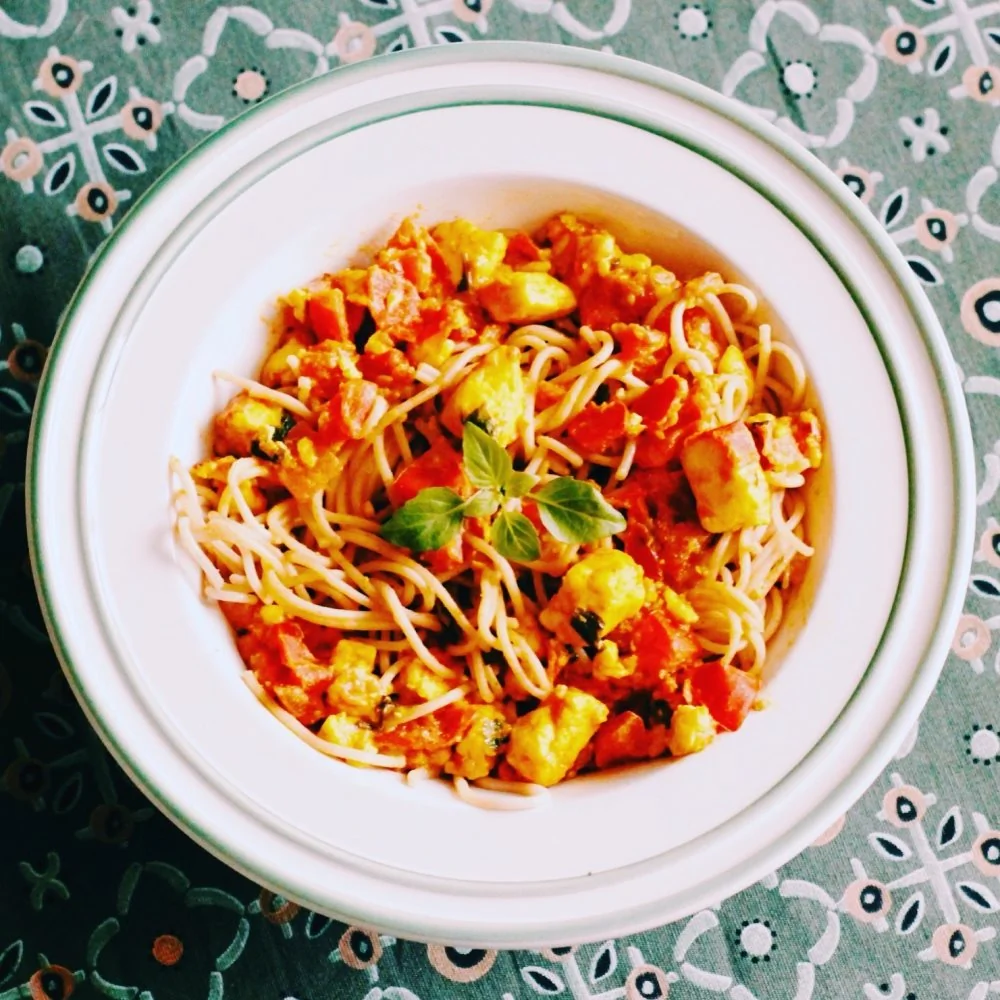 ШАГ 3 Добавить сметану и перемешать. Затем насыпать черный перец и посыпать измельченным свежим базиликом. Перемешать и выключить.