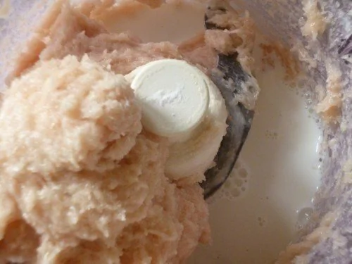 Положить в чашу комбайна и перемолоть, постепенно добавляя все ингредиенты в произвольном порядке. Молоко лучше вливать частями, а не сразу. Чеснок предварительно раздавить или мелко нарезать, чтобы он гарантированно измельчился. (Специи по желанию я брала перец чёрный, кардамон, орех мускатный, кориандр)