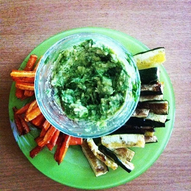 ШАГ 5 Подавать овощные чипсы на подносе с зелёным соусом.