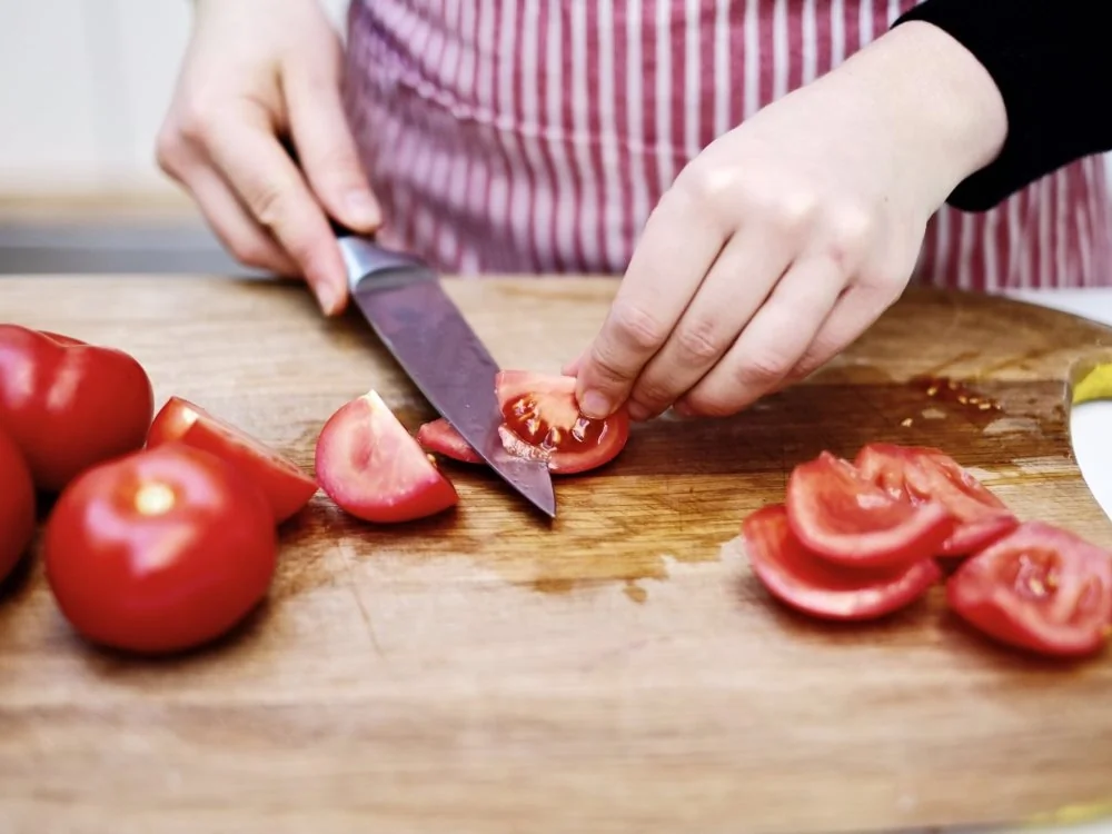 ШАГ 6 Помидоры нарежьте на 6 частей и удалите мякоть с семенами