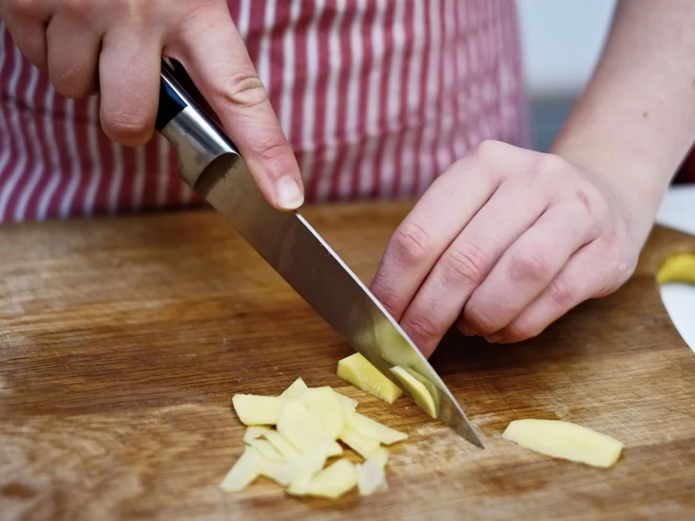 ШАГ 1 Очистите картофель и нарежьте крупными дольками размером около 3 см