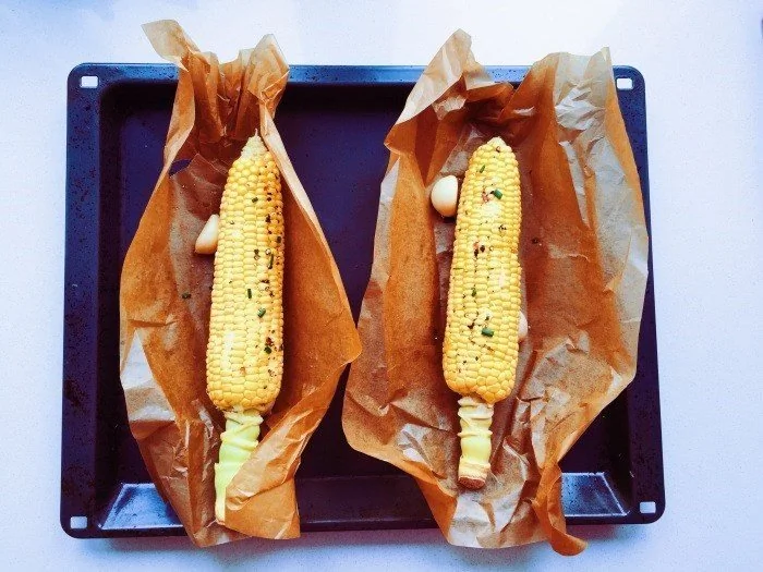 ШАГ 8 Завернуть початки в пекарскую бумагу.