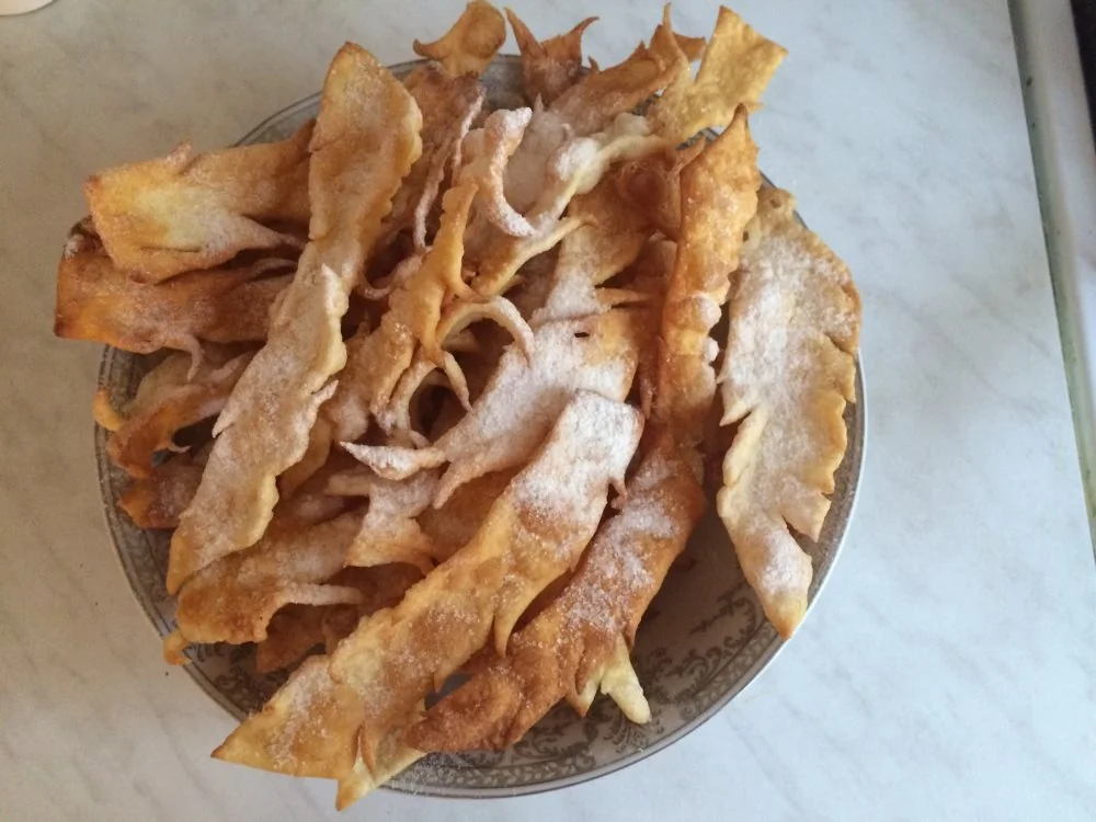 ШАГ 4 Дать хворосту остыть, посыпать его сверху сахарной пудрой.