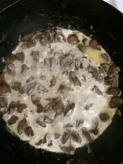 ШАГ 3 Переложите сердечки в сковороду, обжарьте на сильном огне минут 10.