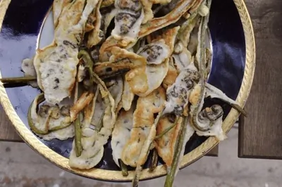 ШАГ 4 Обмакнуть рахис (веточка папоротника) в кляр и переложить для жарки на сковороду. Обжарить с двух сторон.