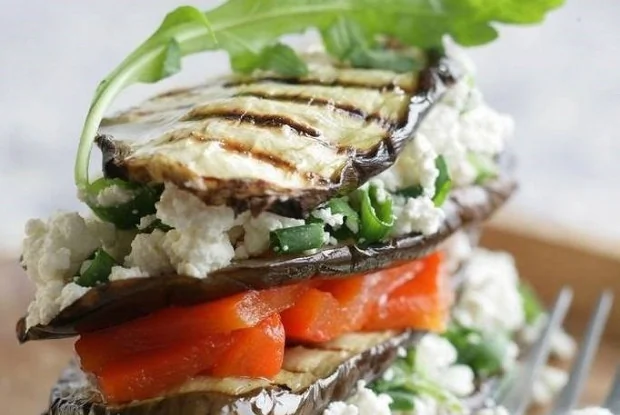 Пирамида из гриль овощей с творогом и зеленью
