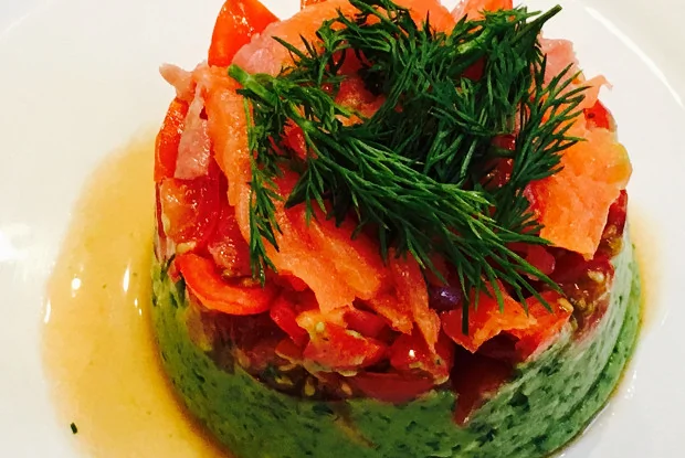 Тимбал из авокадо с копченым лососем