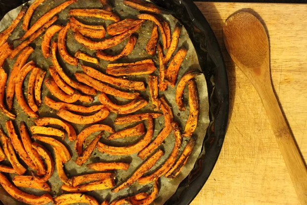 ШАГ 3 Наконец выложить морковь на противень с выстланной на дно бумагой. Запекать при температуре 180-200 градусов около 40 минут.