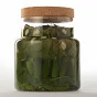 ШАГ 3 В банку выложить часть листьев хрена, вишни, смородины, стеблей укропа и чеснока, затем огурцы, далее еще один слой зелени и чеснока, снова огурцы и закрыть их зеленью.