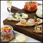 ШАГ 6 Перемешать размягченное масло с икрой до однородной консистенции. Ржаные хлебцы намазать тонким слоем масла с икрой. Подавать все вместе: три вида маринованной сельди, сыр и хлебцы. Запивать темным пивом или шнапсом.