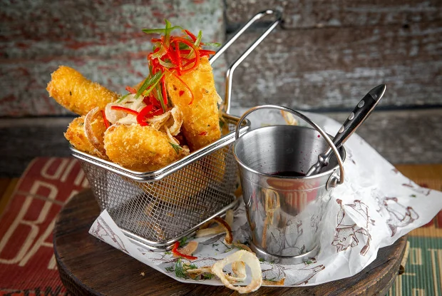 Жареный сулугуни с брусничным соусом от Funny Cabany
