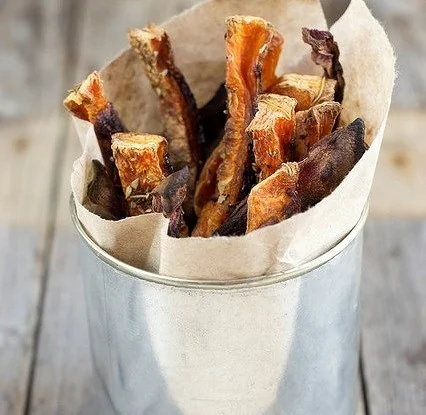ШАГ 2 Застелить противень бумагой или специальным ковриком для выпечки. Разложить соломку так, чтобы овощи не прикасались друг к другу. Посыпать прованскими травами.